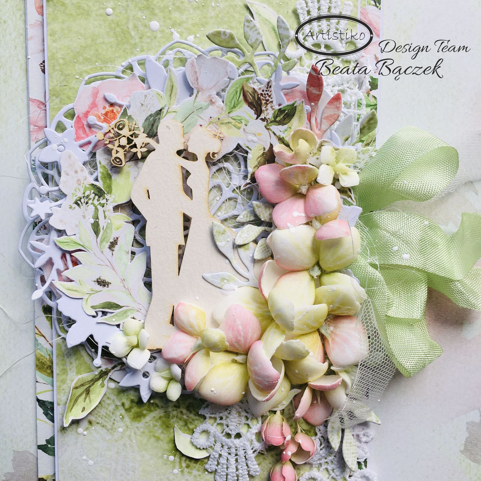 Live from facebook fanpage for unknown reasons disappeared, which worries us very much. We are left present the work that was created on it. I made a wedding card to show You that latest " My Garden" collection. This collection is very universal, it has beautiful colors, very delicate colors, subtle sheets. You can simply use it for very different occasions.